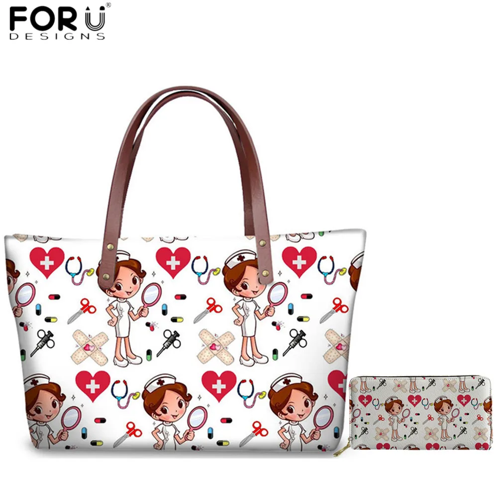 Discount FORUDESIGNS Casual Women Tote Bags Nurse Medical Doctor Pattern Shoulder Bag for Ladies Girls Handb